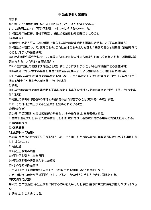 第1条 この規程は,他社が不公正取引を行ったときの対策を定める。