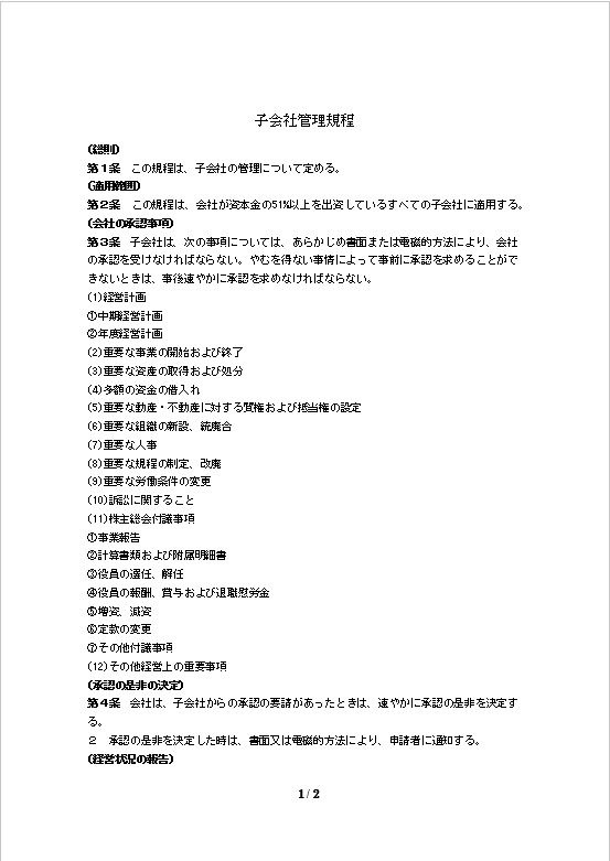 第1条 この規程は、子会社の管理について定める。