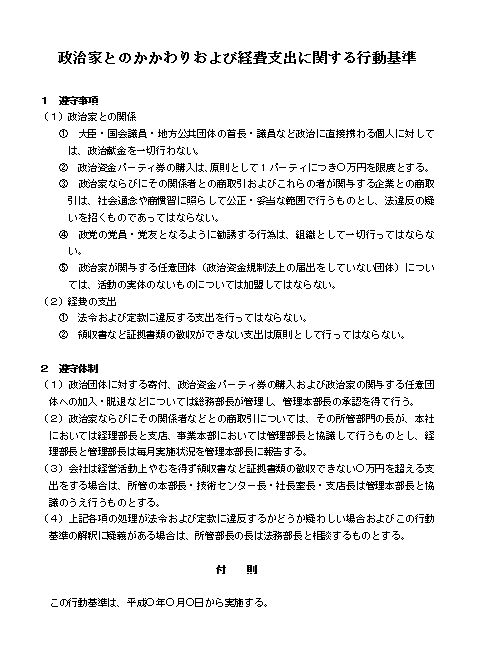 政治家とのかかわりおよび経費支出に関する行動基準
