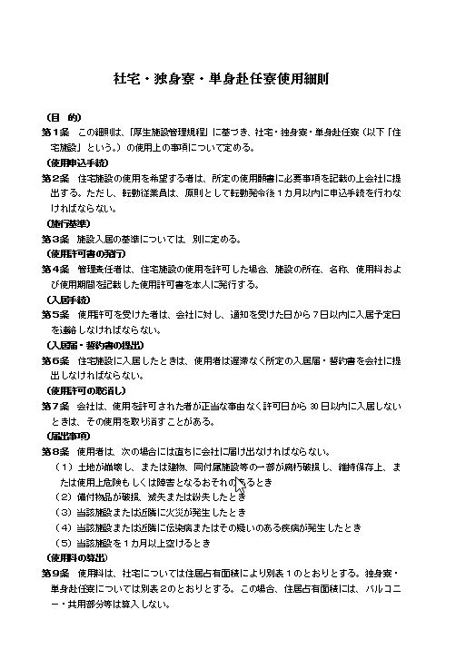 社宅・独身寮・単身赴任寮使用細則(大会社・全業種)