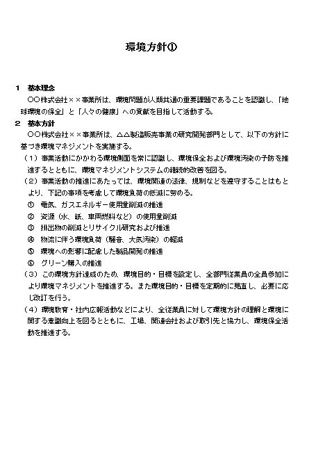 環境方針①(大会社・製造業)のテキスト