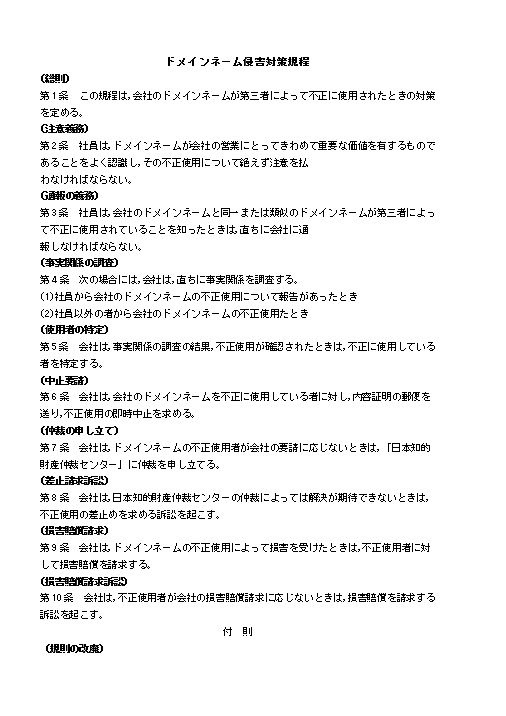 ドメインネーム侵害対策規程のテキスト