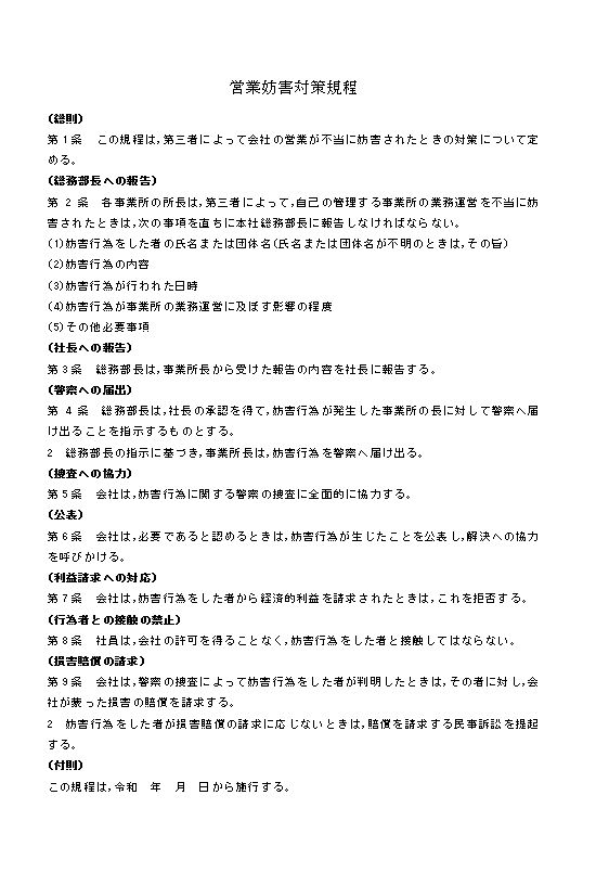 営業妨害対策規程のテキスト