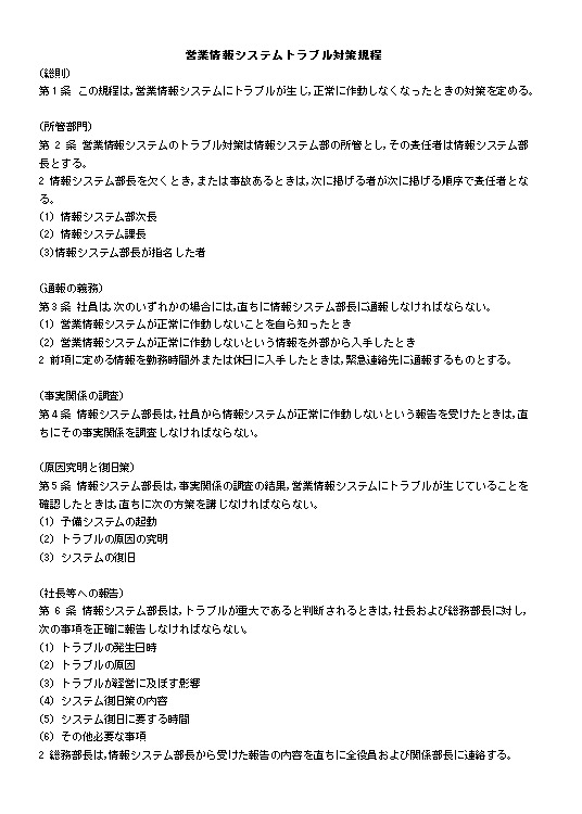 営業情報システムトラブル対策規程のテキスト
