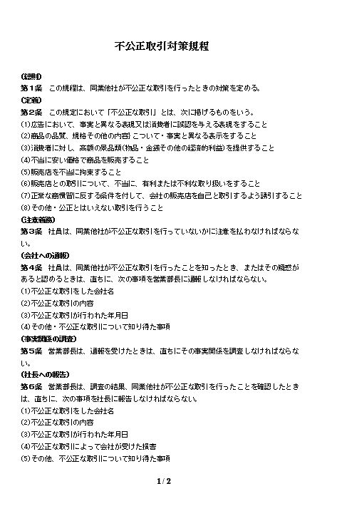 不公正取引対策規程のテキスト