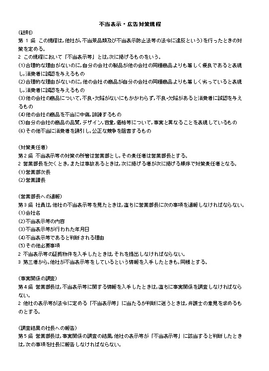 不当表示・広告対策規程のテキスト