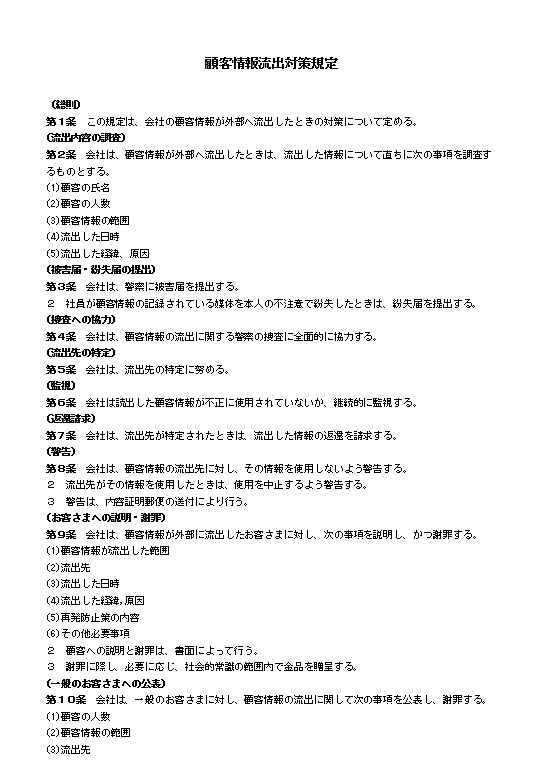 第1条 この規定は、会社の顧客情報が外部へ流出したときの対策について定める。