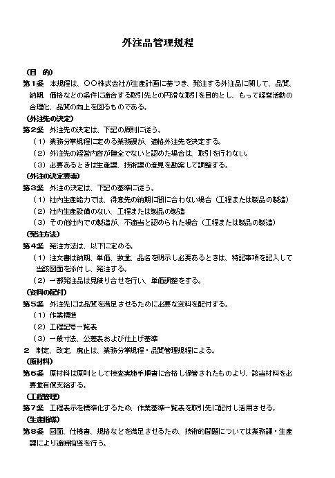 外注品管理規程(大会社・製造業)のテキスト