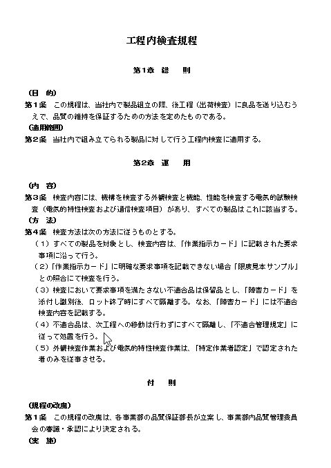 工程内検査規程(大会社・製造業)のテキスト