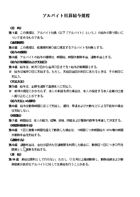 アルバイト社員給与規程