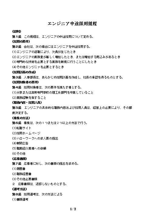 第2条 会社は、次の場合にはエンジニアを中途採用する。