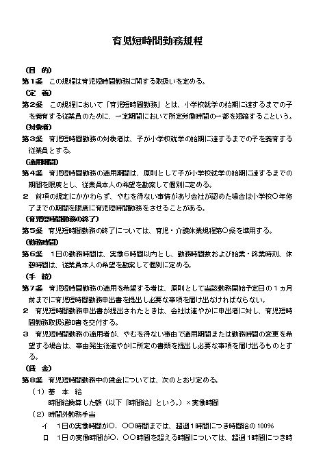 育児短時間勤務規程(中小会社・サービス業)