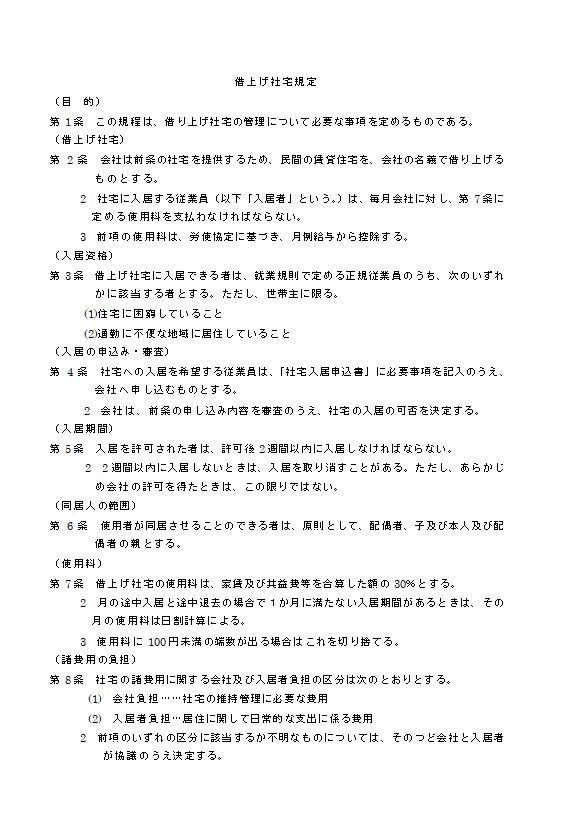 第2条 会社は前条の社宅を提供するため、民間の賃貸住宅を、会社の名義で借り上げるものとする。