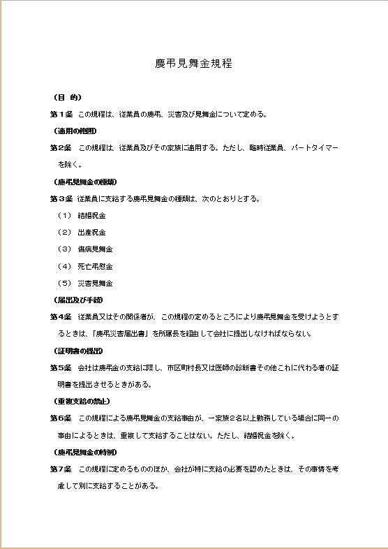 慶弔見舞金規程のテキスト