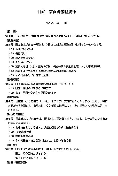 日直・宿直者服務規律(大会社・サービス業)