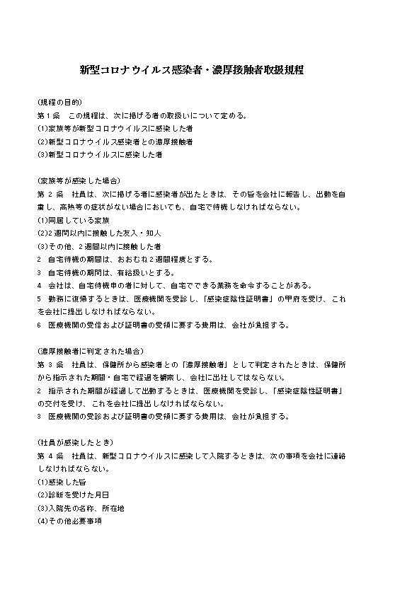 新型コロナウイルス感染者・濃厚接触者取扱規程のテキスト