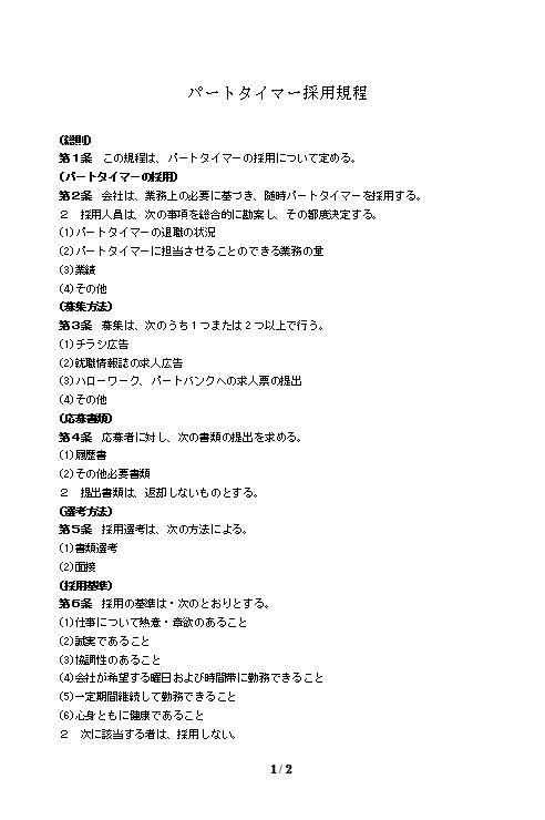 第2条 会社は、業務上の必要に基づき、随時パートタイマーを採用する。
