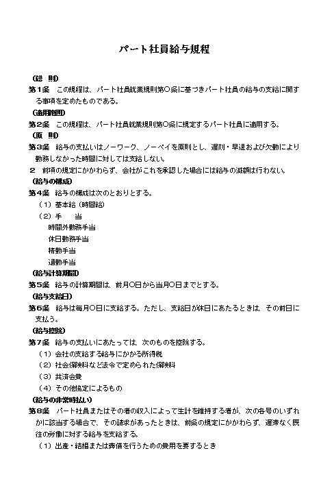 パート社員給与規程(中小会社・サービス業)