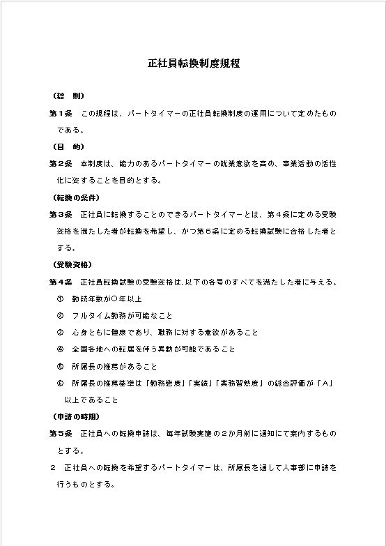 第3条 正社員に転換することのできるパートタイマーとは、第4条に定める受験資格を満たした者が転換を希望し、かつ第6条に定める転換試験に合格した者とする。