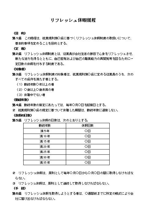 リフレッシュ休暇規程(中小会社・商社)