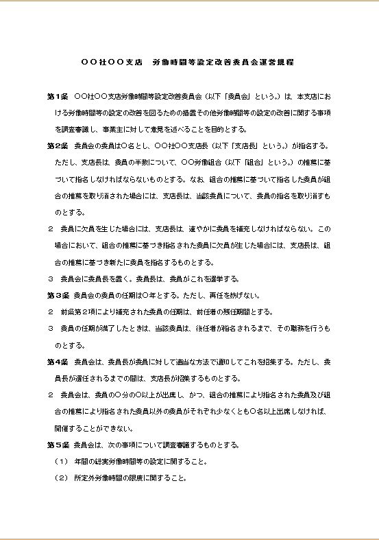 労働時間等設定改善委員会運営規程のテキスト