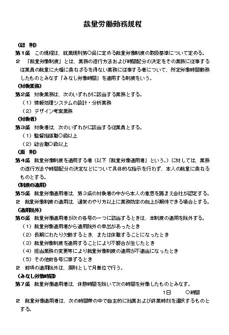 裁量労働勤務規程(大会社・サービス業)のテキスト