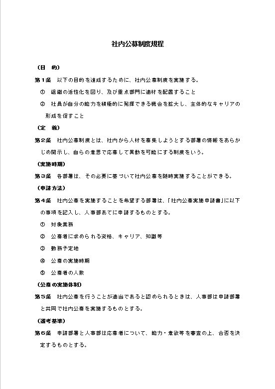 社内公募制度規程のテキスト