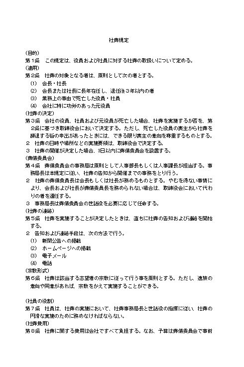 社葬規定のテキスト
