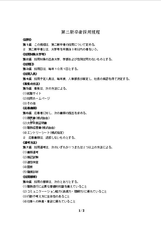 第2条 採用対象の出身大学、学部および性別は問わないものとする。