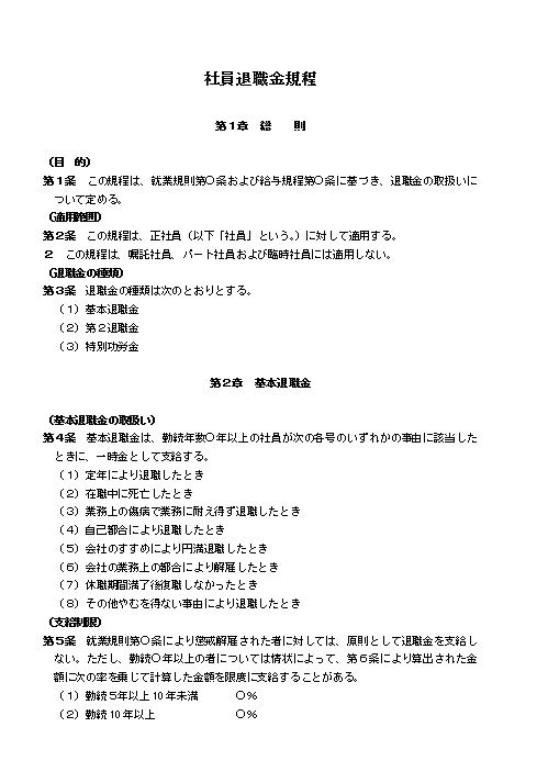 社員退職金規程(中小会社・製造業)