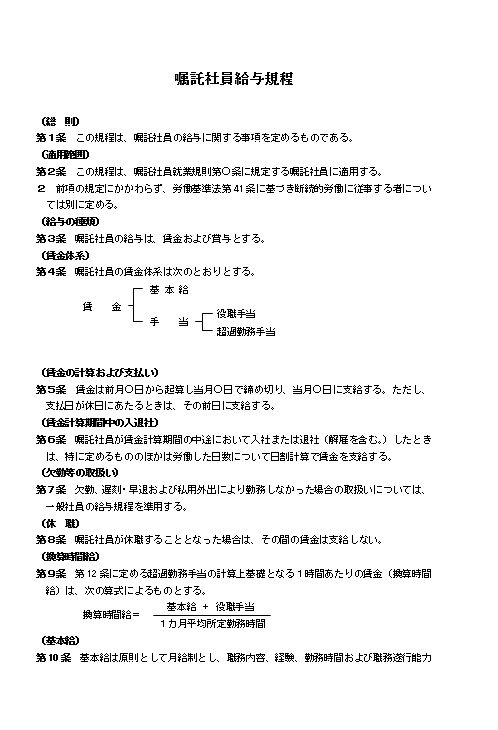 嘱託社員給与規程(大会社・製造業)のテキスト