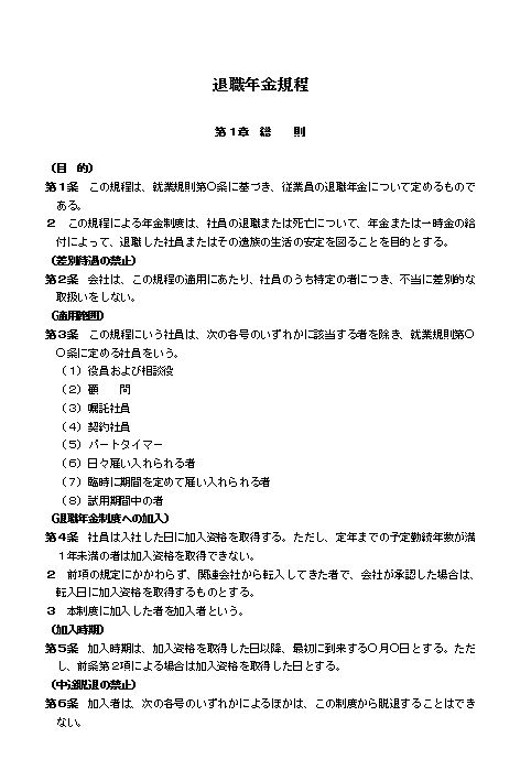 第1条 この規程は、就業規則第○条に基づき、従業員の退職年金について定めるものである。