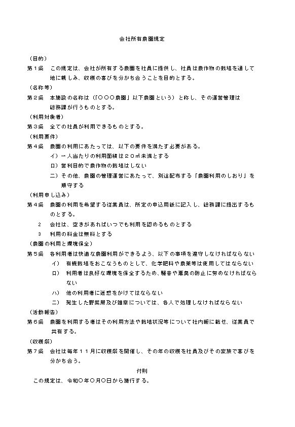 会社所有の農園規定のテキスト