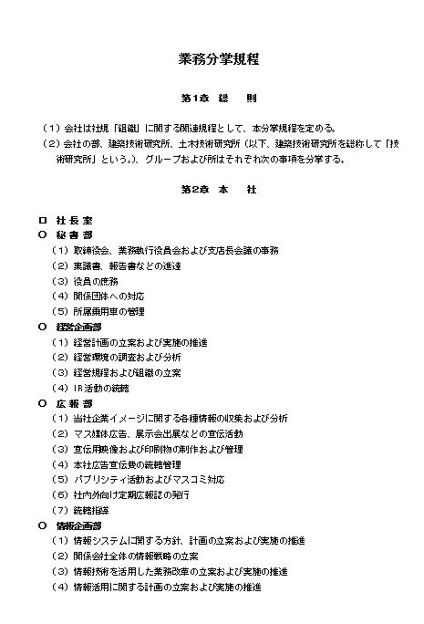業務分掌規程(大会社・建設業) のテキスト