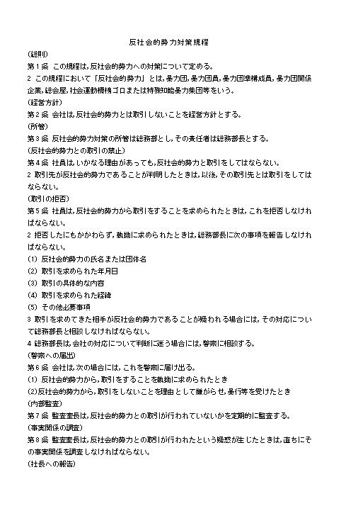 第2条 会社は,反社会的勢力とは取引しないことを経営方針とする。