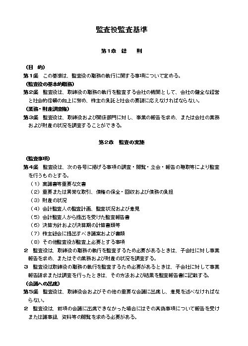 第1条 この基準は、監査役の職務の執行に関する事項について定める。
