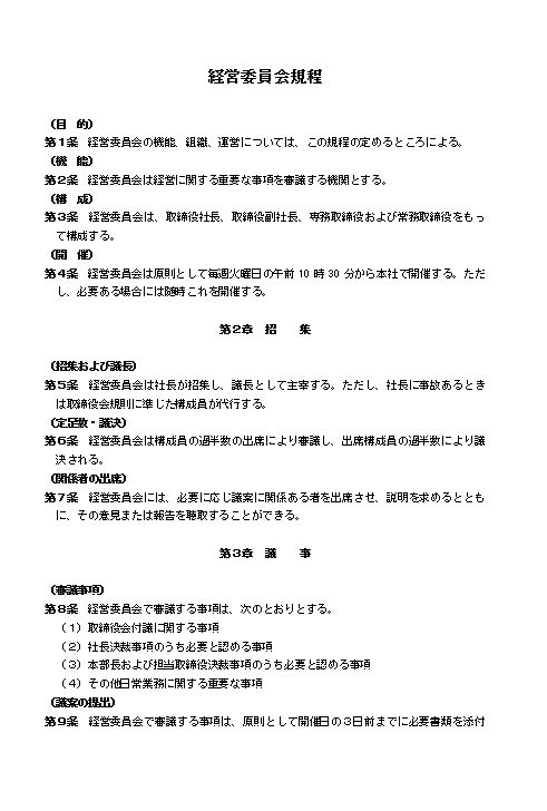 第1条 経営委員会の機能、組織、運営については、この規程の定めるところによる。