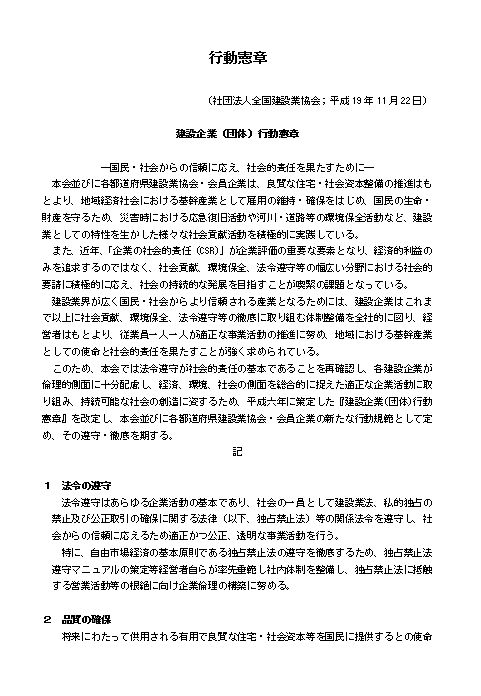 行動憲章(社団法人全国建設業協会)のテキスト