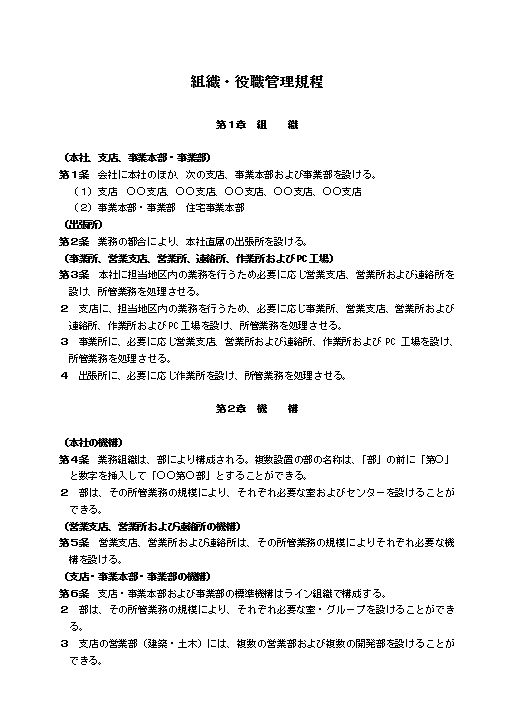 組織・役職管理規程①(大会社・建設業)