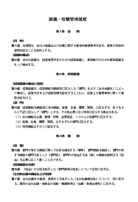 組織・役職管理規程②(大会社・製造業) のテキスト