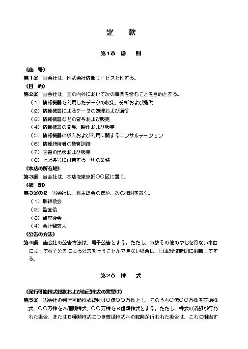 第1条 当会社は、株式会社情報サービスと称する。
