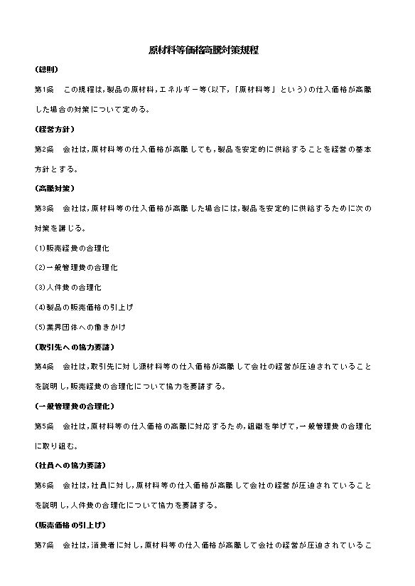 原材料等価格高騰対策規程のテキスト