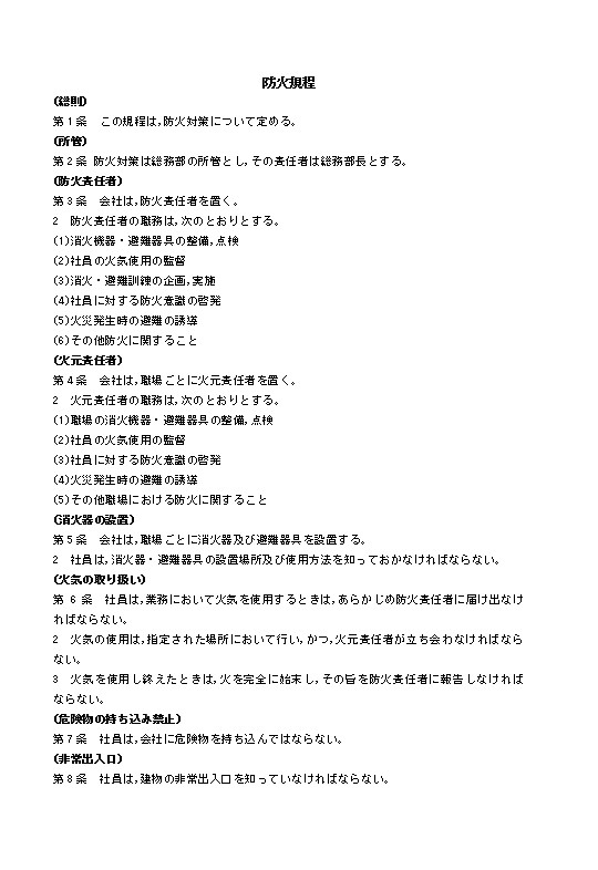 第9条 会社は,有事に際して被害を最小限にとどめるため,定期的に消火避難訓練を行う。