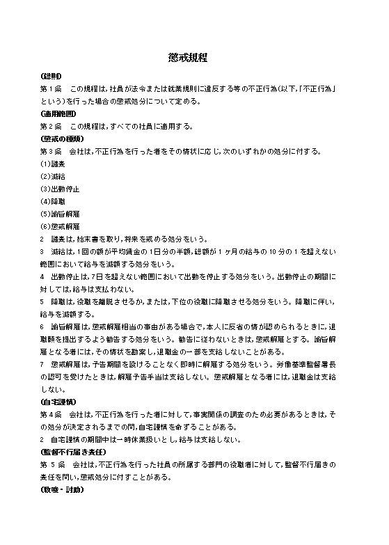 懲戒規程のテキスト