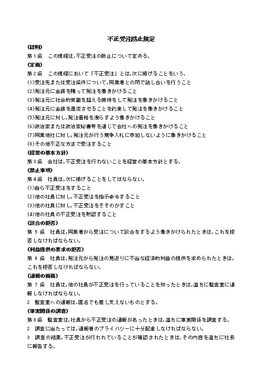 第1条 この規程は,不正受注の防止について定める。