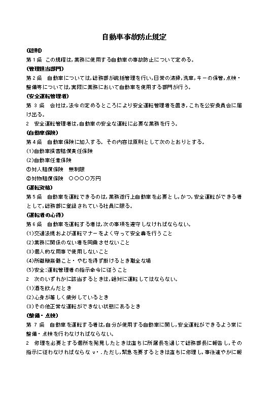 第1条 この規程は,業務に使用する自動車の事故防止について定める。