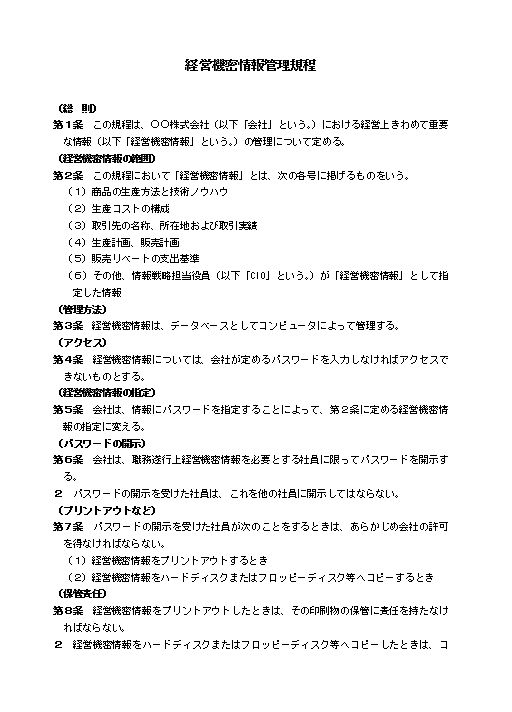 経営機密情報管理規程(大会社・製造業)