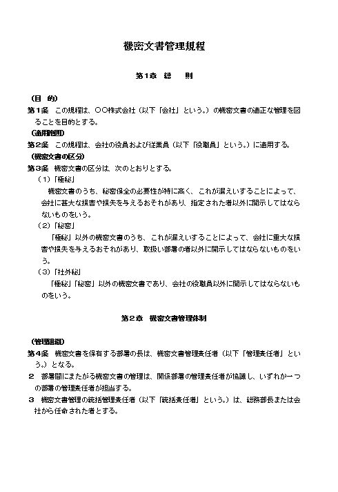 機密文書管理規程(大会社・全業種)