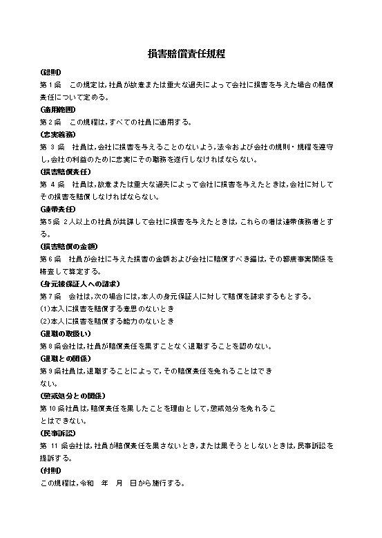 損害賠償責任規程のテキスト