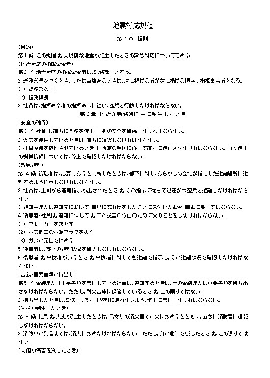 地震対応規程のテキスト